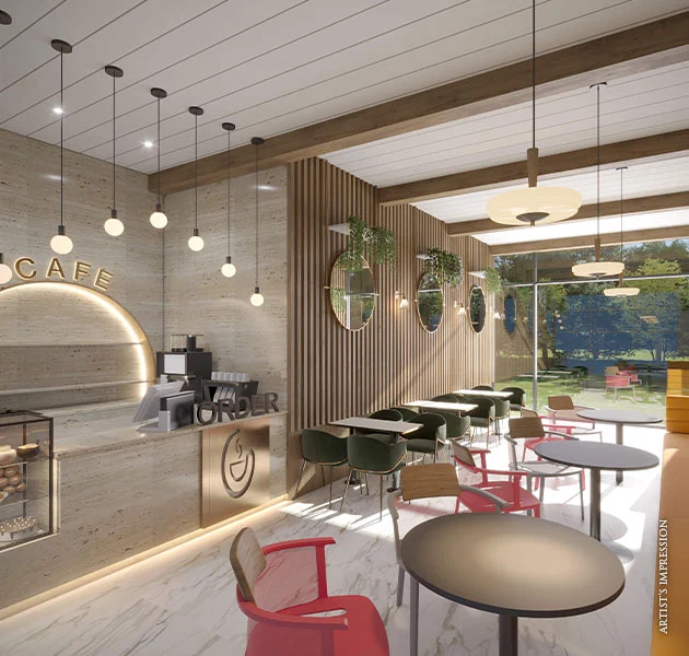Escape to the exclusive in-house cafe, where a refined ambiance creates the perfect setting for residents to unwind and connect in style.