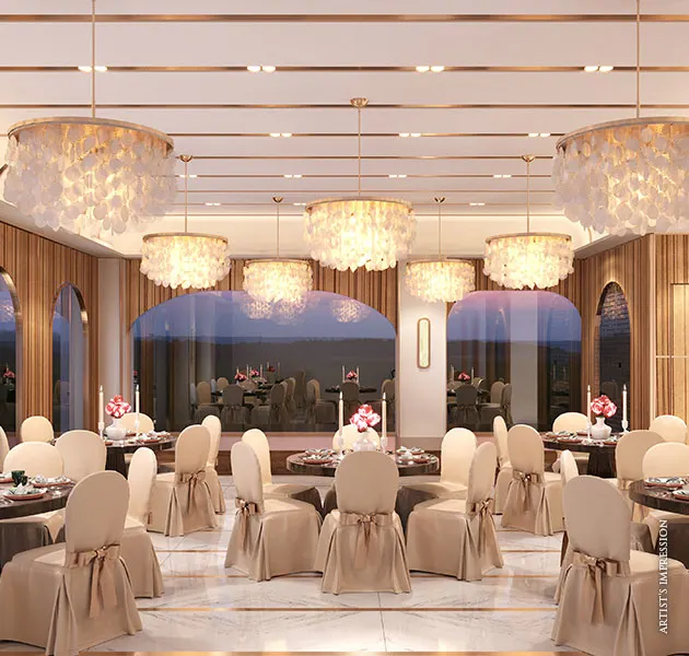 Celebrate life's special moments in our Pearl-Banquet hall, where a refined setting creates the perfect backdrop for every occasion.